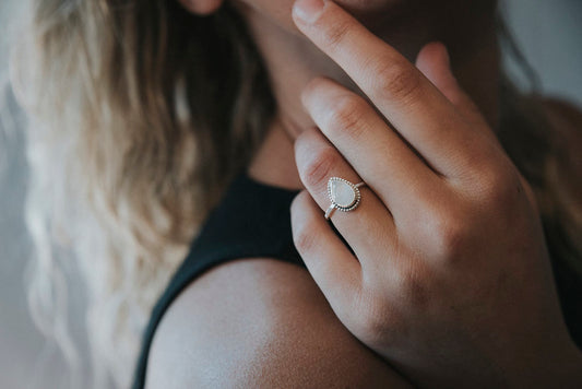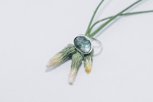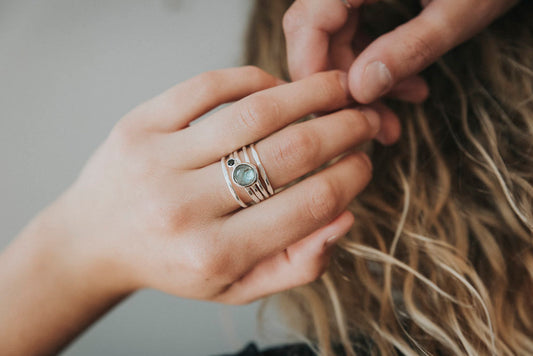Labradorite and Black Spinel Gemstone Double Band Ring