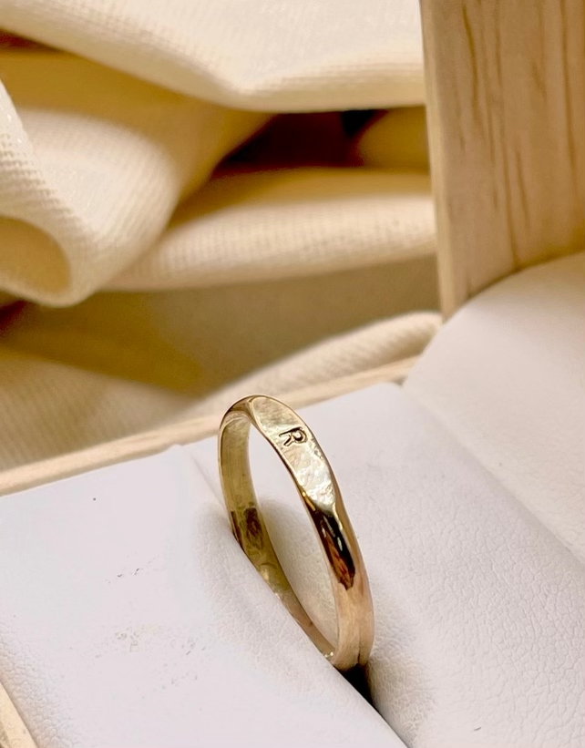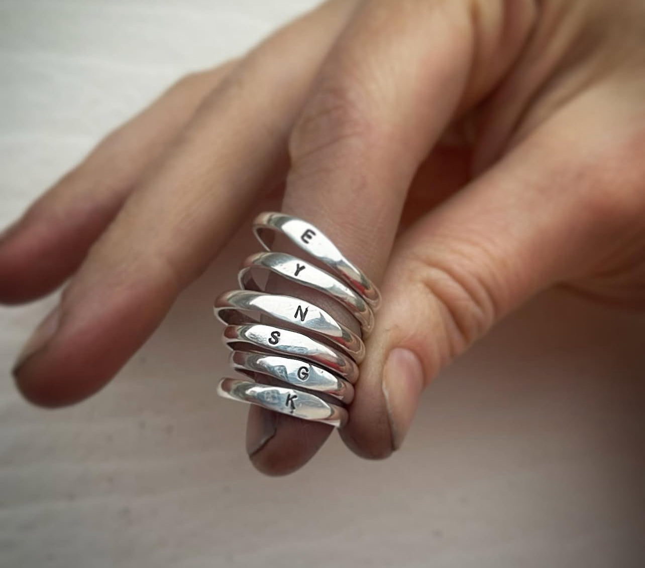 12 gauge sterling silver band, slightly hammered to handstand your choice of letter.