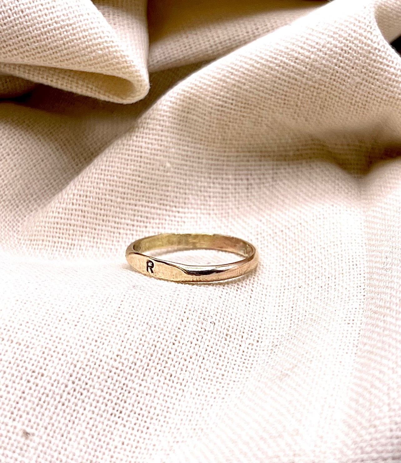 A best seller, the Initial Ring is personalized to you. Either worn stacked with additional rings or alone, the band is comfortable for a 24 hour wear.